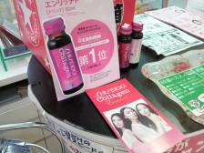 化粧品売り場で、試飲していました。